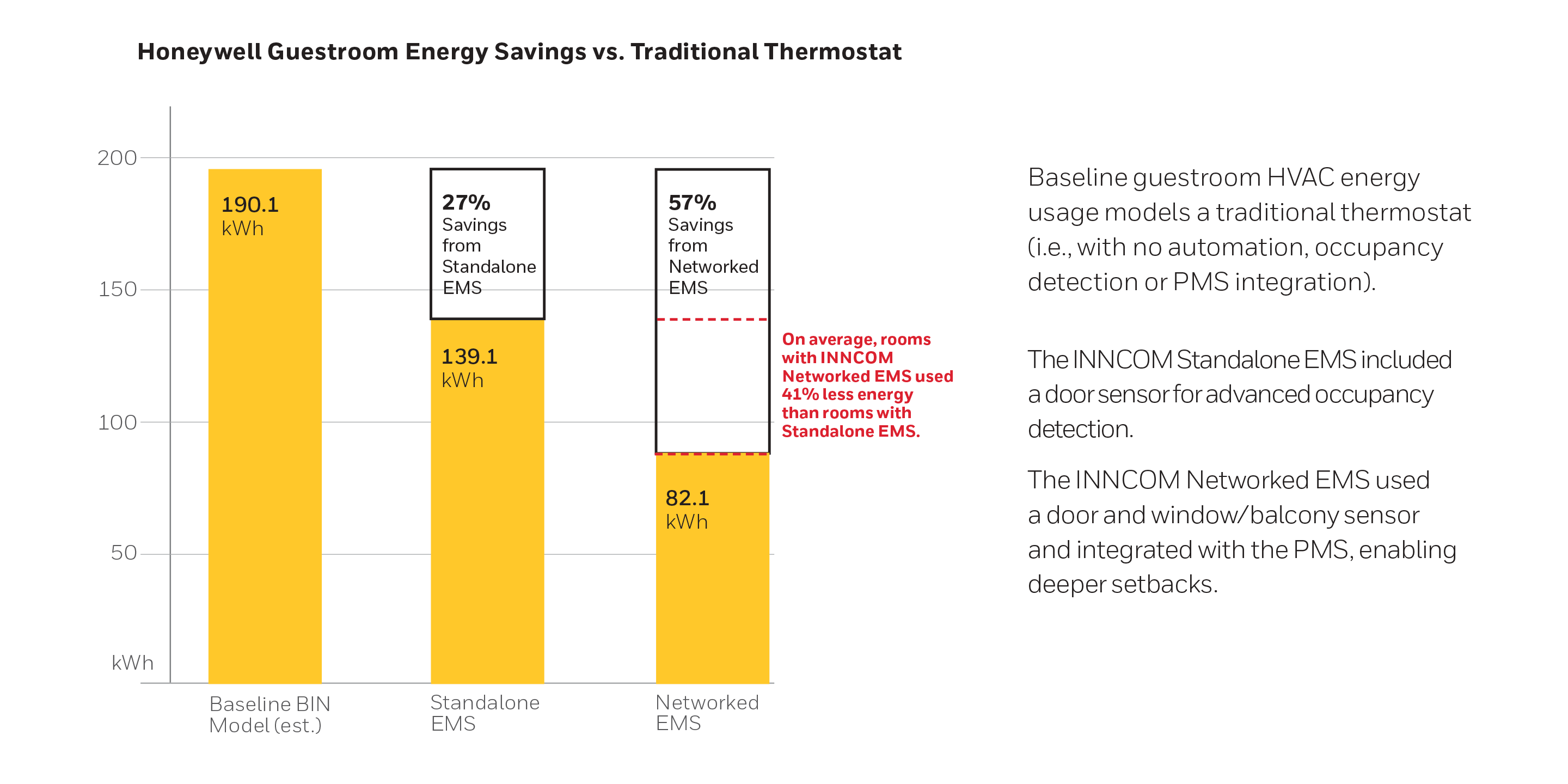 - Rooms with a Networked EMS showed an estimated 57% energy savings.